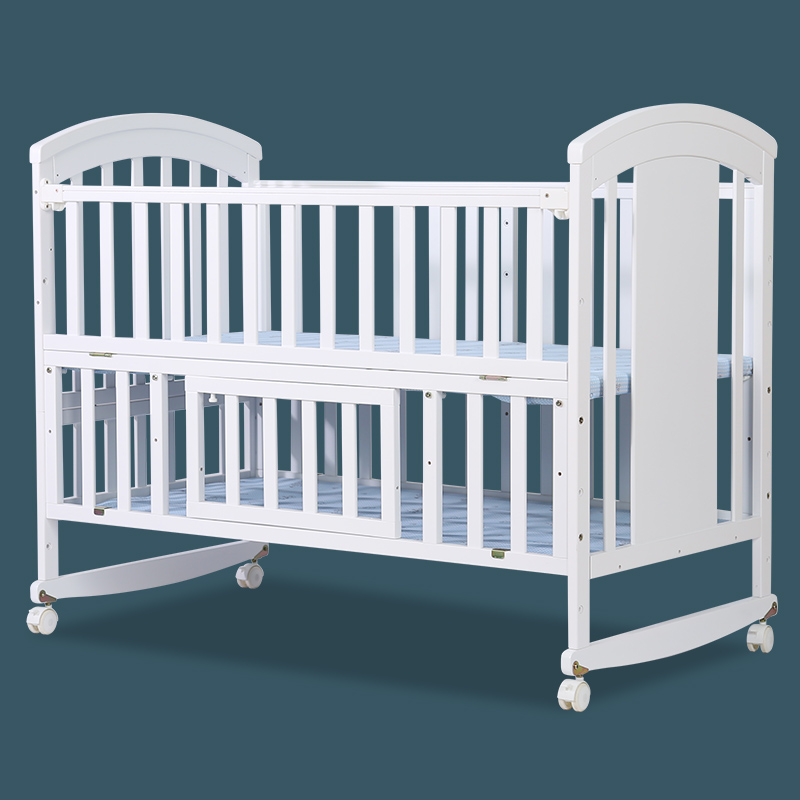 Functions: The sides can be flipped to lean against the bedside; Rocking function; Storage space at the bottom; Baby crib castor mobility