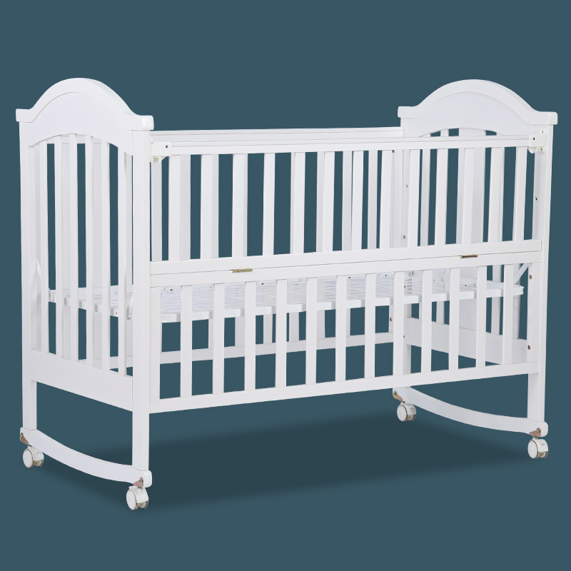 Functions: the sides can be flipped to lean against the bedside; rocking function; storage space at the bottom; extendable sides;